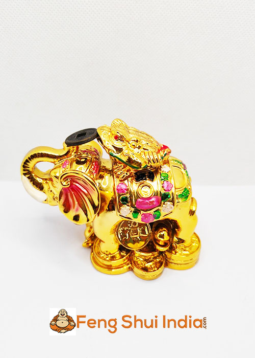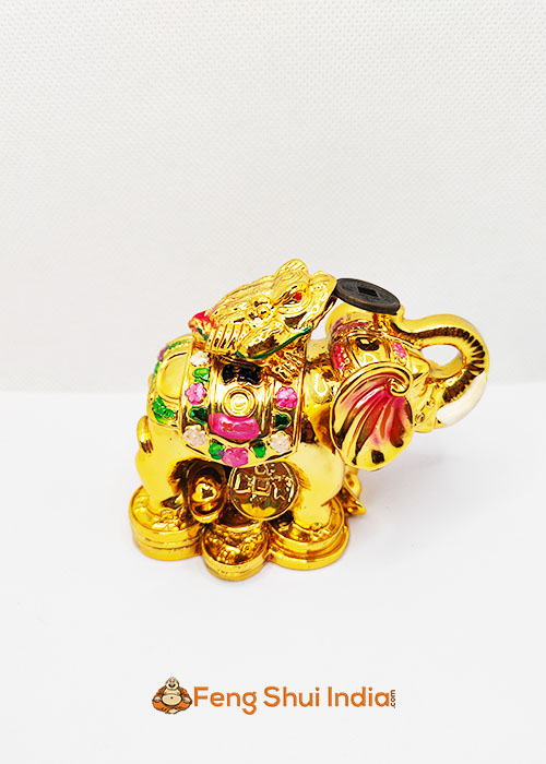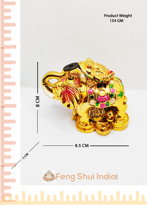 Wealth Frog on wish fulfilling Elephant is a striking representation of the Elephant with its trunk raised in victory and standing on a bed of gold ingots and auspicious coins to signify good fortune. On its back is a three legged frog. The Elephant is a strong symbol of strength, wisdom and courage; whereas the 3 legged money Frog is a famous Feng Shui symbol as a wealth attractor. Combined together, the figurine of the 3 Legged Frog on Wish Fulfilling Elephant is ideal for those who wish for a boost in their career and financial status. Place the 3 Legged Frog on Wish Fulfilling Elephant prominently on your work desk facing outwards in your office for protection and good luck in your career or business.